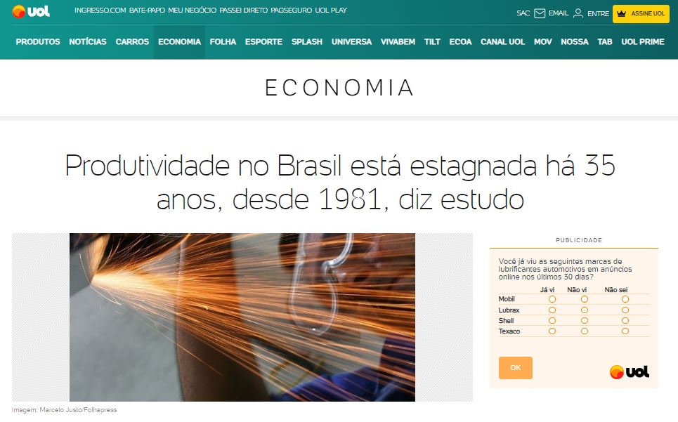anos, a produtividade da economia brasileira encontra-se estagnada.